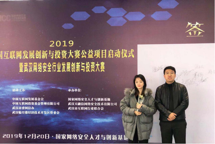 2019年12月20日上午9:00由中国互联网发展基金会、中国互联网投资基金管理有限公司、武汉市委网信办、武汉临空港经济技术开发区管委会共同主办的“首届中国互联网发展创新与投资大赛”启动仪式暨武汉网络安全行业发展创新与投资大赛于在武汉东西湖区国家网络安全人才与创新基地展示中心举办。经过层层评选,共选出10家获奖企业。由Beat365官网代棋帆博士为负责人的此方智能环境设计工程有限公司荣获优秀奖。来自中国互联网和网络安全行业的领导、专家为企业颁奖并合影留念。