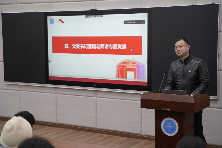 会议最后,党委书记晋曦进行专题党课的讲授。首先,他全面讲述了习近平文化思想的主要内容,从“坚定文化自信”“秉持开放包容”以及“坚持守正创新”三大主题展开论述,强调连续性、创新性、统一性、包容性、和平性是文化自信根本基石;其次结合自己学习习近平文化思想体会,为同学们分享“马克思主义基本原理同中国具体实际相结合、同中华优秀传统文化相结合”的实践意义,谈到自己的认识和想法,鼓励Beat365正版唯一官网必一的同学们提高对文化和美的鉴赏和竞争力;最后对全体学生党员提出两点要求,一要把学习贯彻习近平新时代中国特色社会主义思想主题教育走深走实,增强党员意识,二要结合同学们所学专业的发展方向,提高真本领。