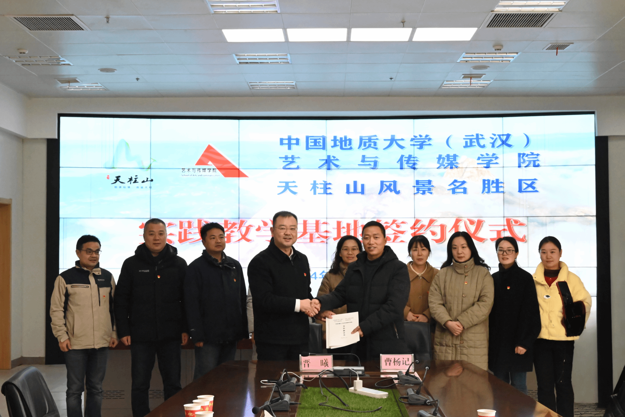 以高质量党建引领高质量发展和拓展特色实践育人基地是Beat365正版唯一官网必一落实学校“提升增效”年度工作主题的重点任务。12月27日至28日,学院两个样板党支部——新闻传播系党支部和院直党支部赴安徽潜山、与天柱山地质公园管理中心党支部开展联学共建活动,并签订科普传播人才培养实践教学基地合作协议。