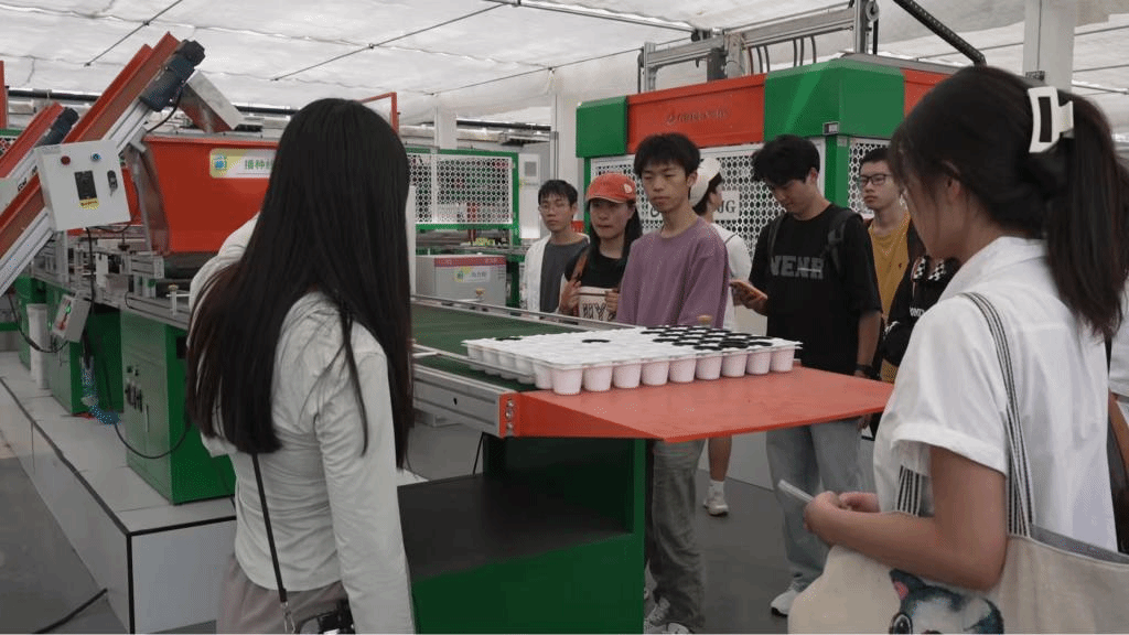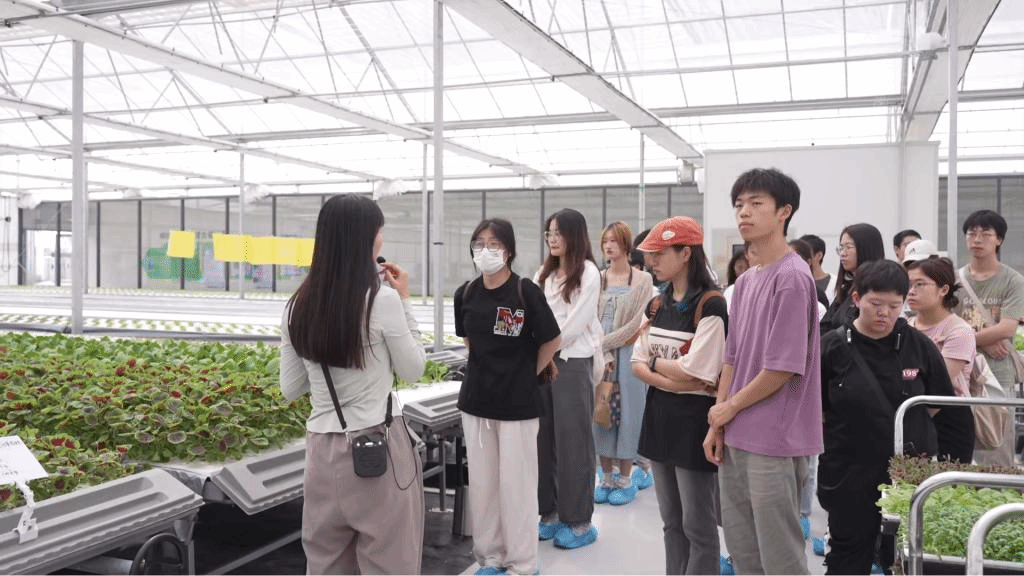 在观摩环节,同学们先后参观了蔬菜工厂、星空营地、智慧农业馆、水生植物种质资源圃等,领略了以智能温控大棚、水肥一体化系统等为代表的现代农业科技设施,见识了科技赋能带来的效率提升、资源节约和生态保护。