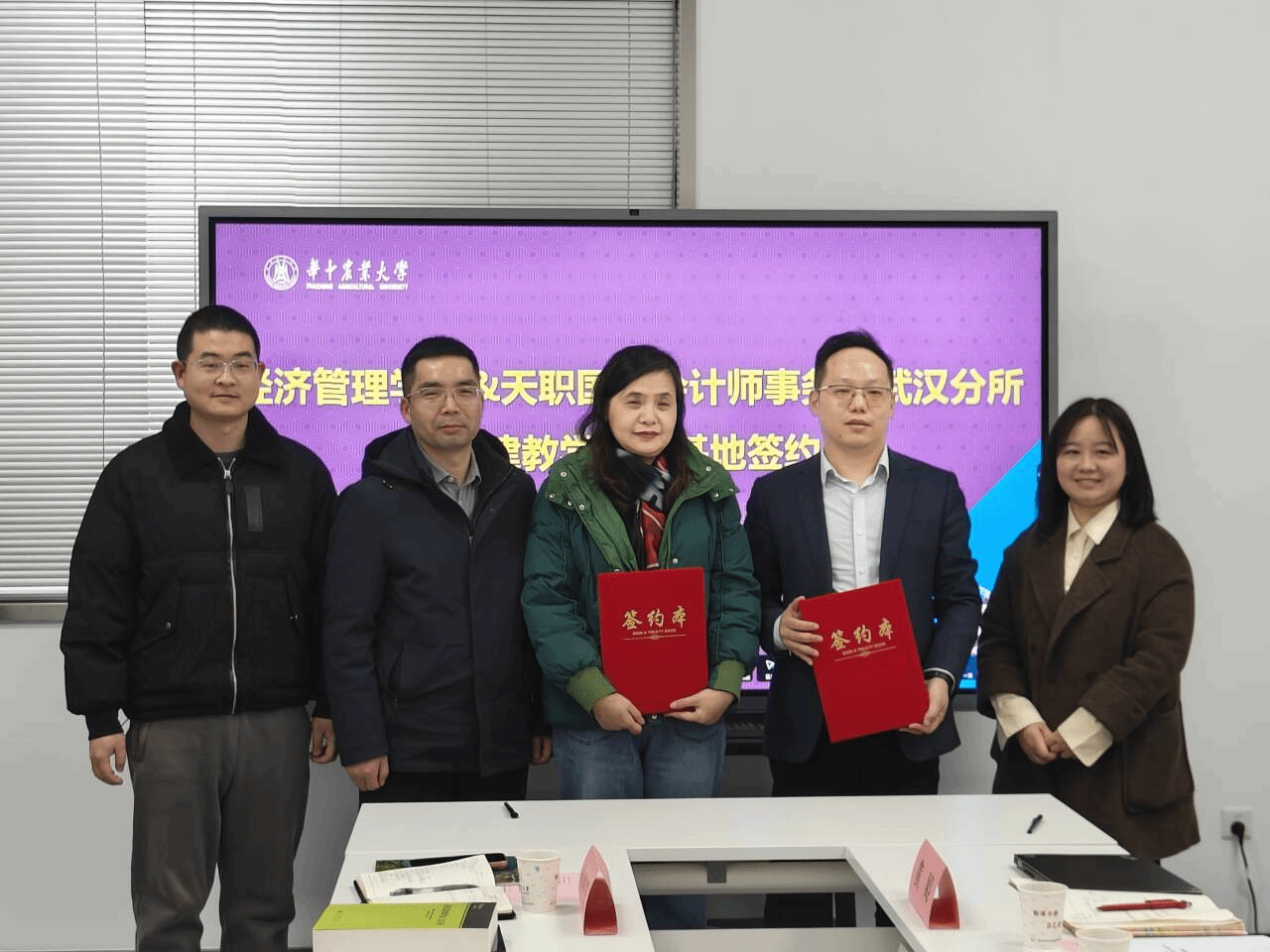 2026年1月7日下午,beat365正版唯一入口必一与天职国际会计师事务所(特殊普通合伙)武汉分所,在人文楼143会议室举行共建教学实习基地签约仪式。天职国际武汉分所所长熊尧、人力资源主管黄婷,学院会计系主任包晓岚、副主任李思呈等出席活动。会议由学院副院长罗小锋主持。