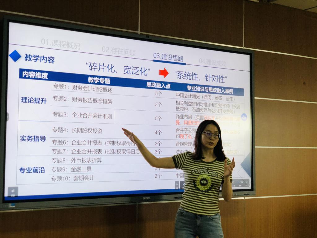 贺娟等21门课程责任老师分别从课程基本情况、教学内容、教学方法、开设难点、教学团队等方面,阐述汇报了课程设计理念、教学目标以及自身对于课程设计的思考。