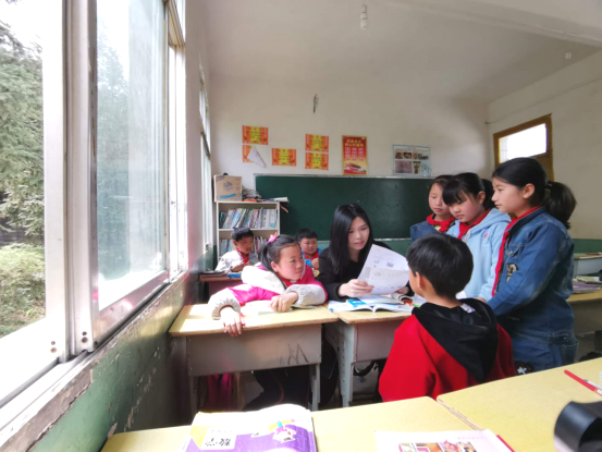 袁嘉晨课间为孩子们讲解习题