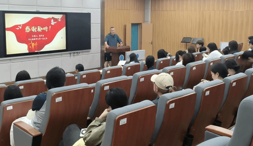 音乐学专业本科生冀昱臣同志系统汇报了参加理论学习培训的收获,讲述了参与志愿服务的体会,并在现场演奏《没有共产党就没有新中国》,用艺术语言表达了对党的忠诚信仰,展现了新时代青年学子的精神风貌。