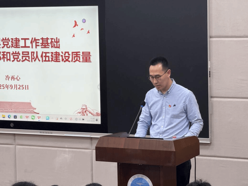 党委书记冷再心同志以“夯实基层党建工作基础,稳步提升党支部和党员队伍建设质量”为题讲授党课。党课围绕三方面展开:一是规范党组织设置,明确设立标准与命名规则;二是严格发展党员工作,系统梳理政策依据与总体要求,优化结构并规范程序以确保质量;三是落实党的组织生活制度,强化“三会一课”、主题党日、谈心谈话、民主评议党员等制度,增强党组织的政治性与战斗性。