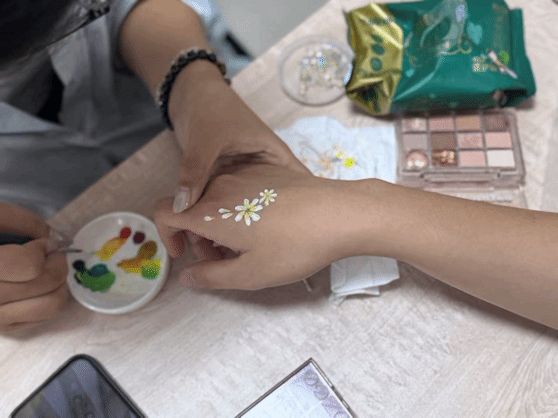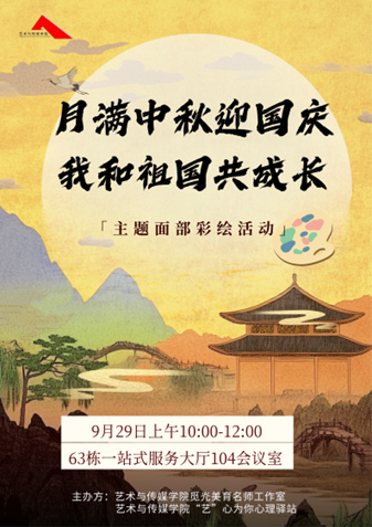 在国庆与中秋双节来临之际,为传承中华传统文化、营造温馨浓厚的节日氛围,9月 29 日上午,由后勤保障部学生住宿服务中心、本科生院主办,Beat365正版唯一官网必一觅灮美育名师工作室、“艺” 心为你心理驿站承办的“月满中秋迎国庆,我和祖国共成长”主题面部彩绘活动在西区63栋一站式服务大厅104会议室顺利举行。觅灮美育名师工作室成员周若君、仝宇、高玮泽、闫莹颖、张笑钏、邵梦华,学工组辅导员曾戈晖,兼职辅导员曹彬彬现场参与,与学校师生共同沉浸于色彩与心灵的创意对话。