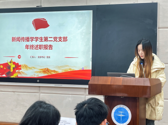 在支部书记述职环节,各支部书记紧扣支部建设“七个有力”要求,重点汇报了带领支部成员在“党建+专业”融合模式上的探索与实践。其中,新闻传播学学生第一党支部书记林志薇介绍了该支部坚持党建引领,创新构建了集“思想引领立体化、组织规范精细化、纪律严明常态化、实践赋能成果化、服务群众深入化”于一体的党建工作矩阵。凭借扎实的工作基础与显著的育人成效,该支部成功入选校级“党建双创”培育单位,为学院基层党组织建设树立了标杆。