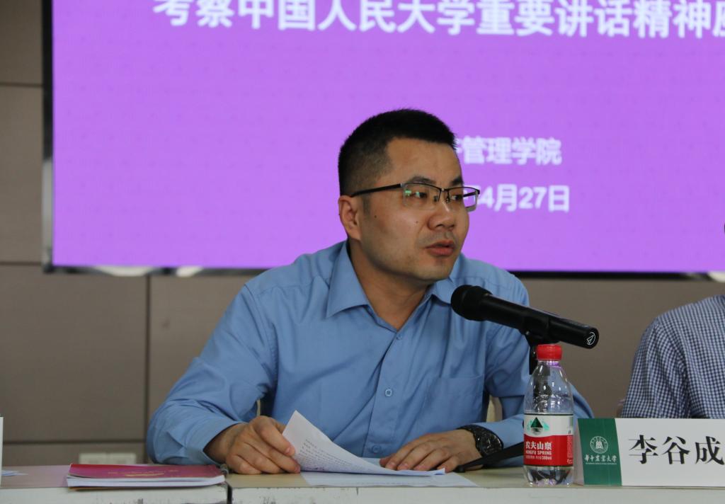 在师生交流环节,院长李谷成教授从学院办学使命、一流学科建设和师资队伍建设等三个方面分享自己的学习体会。他指出,我们要牢记“为党育人,为国育才”的初心使命,始终坚持以立德树人为根本,坚持党的领导,坚持马克思主义的指导地位,坚持为党和人民的事业服务。要立足中国实际,解决中国问题,不断推进知识创新、理论创新与方法创新,建设中国特色、世界一流的农林经济管理学科。要不断加强文化建设,为青年人才潜心耕作提供有力条件和制度保障,支持青年人才挑大梁、当主角,建设一流的师资队伍,将学院打造成为经管类学科领域重要的人才中心和创新高地。
