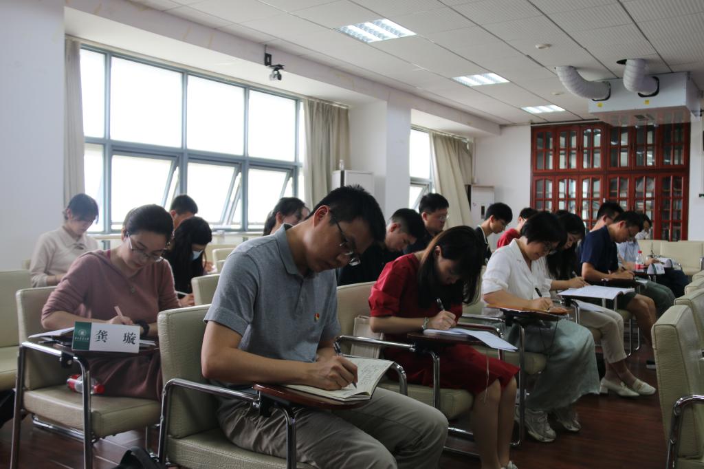 项朝阳、李剑、彭松、任汉铖、施丹等与会师生围绕师资队伍建设、学术研究、思政育人、大学精神等方面,纷纷畅谈学习体会。