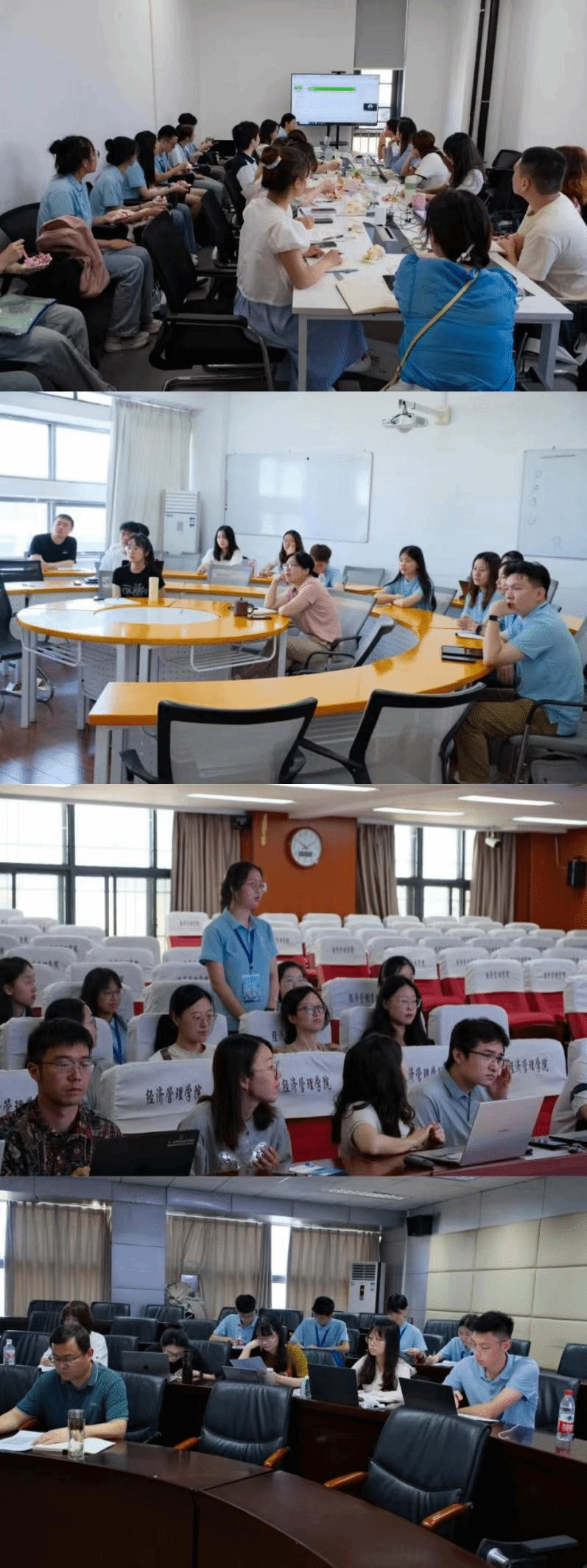 开营仪式后,院长李谷成以“经世致用,问道狮山”为主题,为营员们详细介绍了校情、院情、人才培养以及招生政策,王玉泽、池韵佳、曾光三位老师分别就农林经济管理、工商管理与应用经济学学科点情况进行详细介绍。随后,鲍勇教授通过分享一项自己近期的研究,为营员们介绍了空间自回归Tobit模型,通过学术微报告,带领学生徜徉学术海洋。4日下午,专业面试在人文社科楼进行,全面考察了营员们的综合素养。