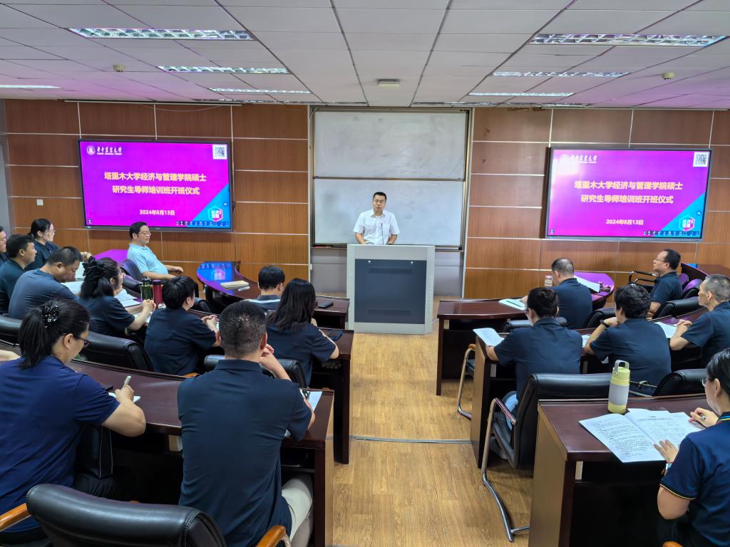 8月13-18日,塔里木大学经济与管理学院硕士研究生导师培训班成功在beat365官网举行。本届导师培训班由beat365正版唯一入口必一承办,在13日举行的开班式由beat365正版唯一入口必一副院长项朝阳主持,学院院长李谷成、校党委研究生工作部部长、研究生院副院长镇志勇、塔里木大学经济与管理学院党委书记蒋志辉以及22名研究生导师、优秀青年教师出席。
