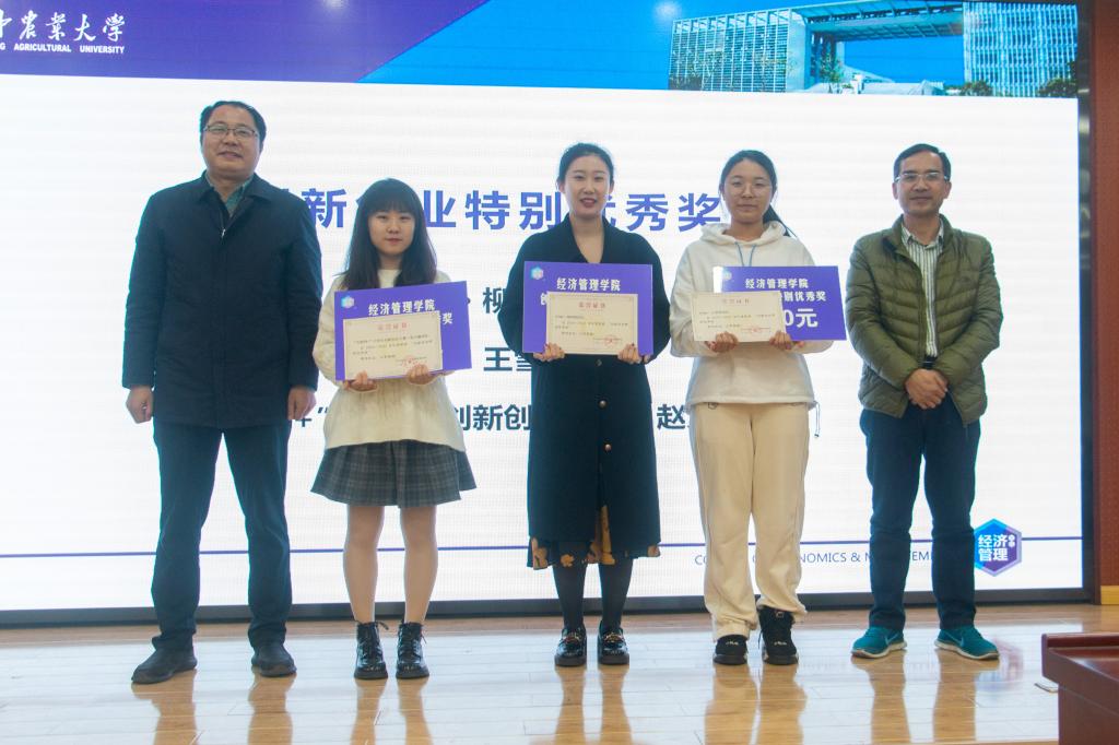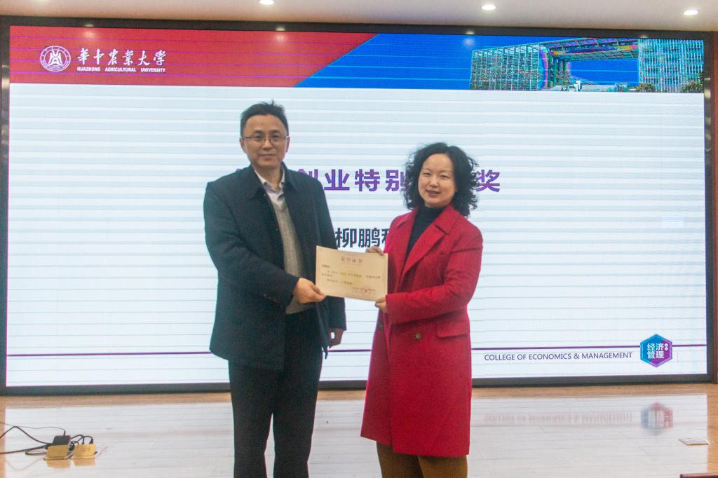 学院副院长罗小锋首先宣读了《beat365正版唯一入口必一关于表彰2021年“俊秀英才奖学金”等院设奖学金获奖团队和个人的决定》。与会嘉宾们分别为“俊秀英才奖学金”“育财荟奖学金”“达尊奖学金”“创新创业特别优秀奖”等学生获奖团队与个人颁发证书,学院党委书记陈国顺为IFAMA优秀指导教师柳鹏程颁发“创新创业特别贡献奖”证书。