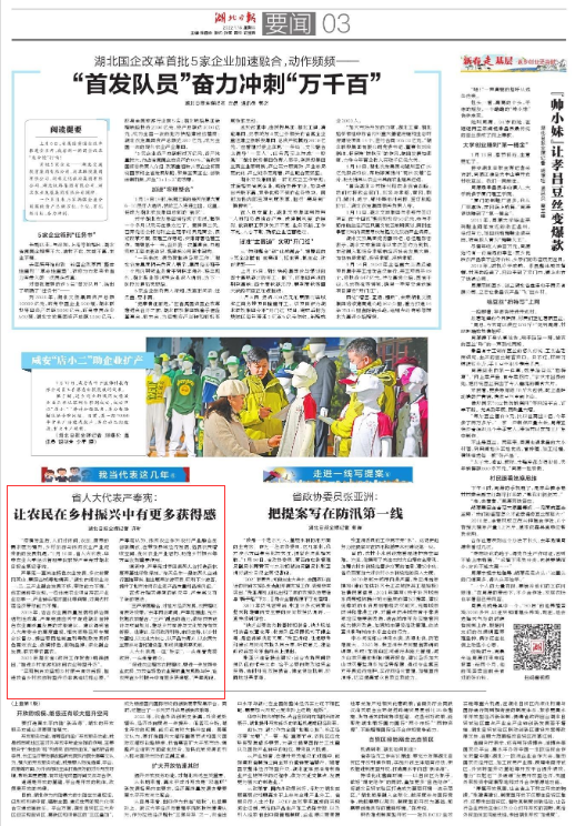 核心提示: 1月18日,《湖北日报》刊发对省人大代表、beat365官网严奉宪老师专访,讲述他让农民在乡村振兴中有更多获得感的故事。