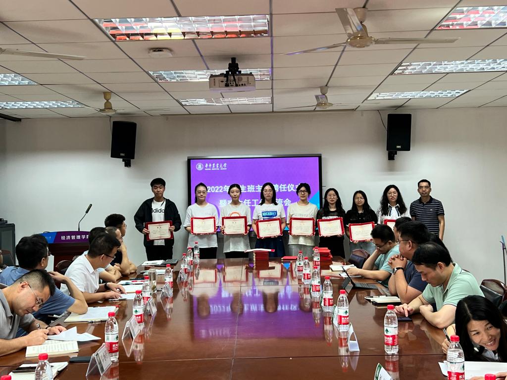 8月28日下午,beat365正版唯一入口必一举行“2022级新生班主任聘任仪式暨班主任工作”交流会。学院党委书记陈国顺、院长李谷成、党委副书记刘三宝、副院长罗小锋及全体2022级新生班主任、2022级新生辅导员、学生班主任助理等50余人参加会议。会议由学院党委副书记刘三宝主持。