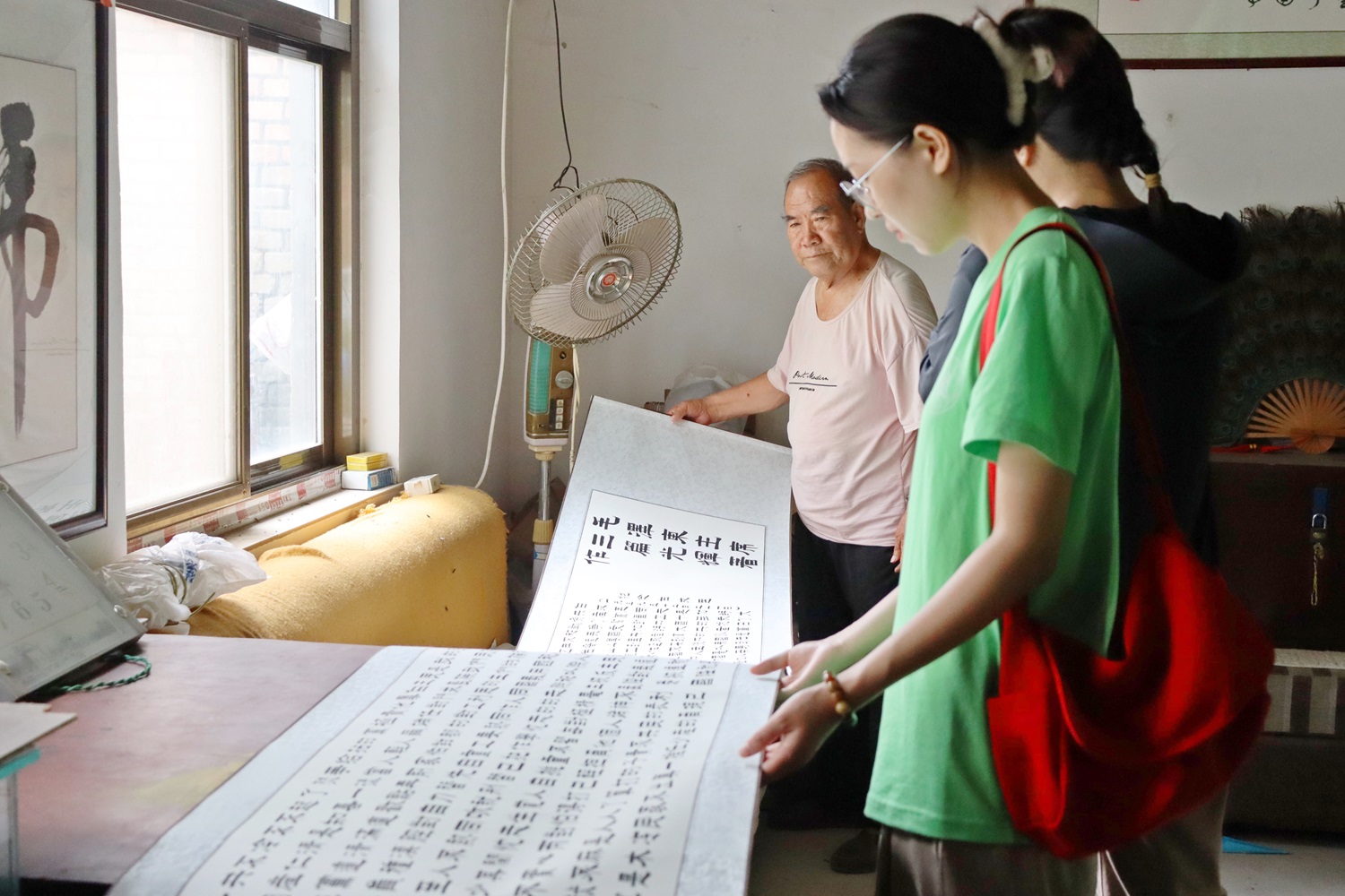 一幅18米书法巨作书写了《毛泽东选集》的经典片段,一面扎根乡土,一面仰望红星。当团队成员走入刘王力村“领航人物”刘兰英先生家中时,他正在伏案写作。交流中,刘兰英对队员们寄予殷切期望,他提到:“乡村想要发展,就要把文化和教育做好。我坚持书写中国从古代到近现代的名家名作,希望能感染到像你们一样的青年人,带着对咱们民族的文化自信,坚定地搞好乡村振兴。”团队成员李静怡对此表示,“刘老先生的话深深打动了我们,乡村文化是乡村振兴的血脉,刘兰英先生的书画作品和他的传承精神正激励着越来越多青年人以实际行动助力乡风文明建设。”
