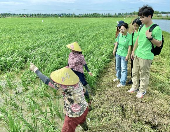 清晨的第一缕阳光洒在了稻田与虾池上,团队一行人来到合兴村,在村支书周先军的介绍下,实践队员们掌握了当地水稻种植的实际情况,也了解了目前水稻种植面临的一些困境,如黑米种植规模不大、生产技术难以支撑种植需求等,为今后的农业科技推广和政策制定提供了方向。