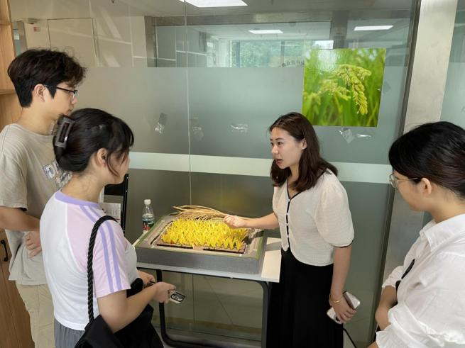 “我们主要是负责对接张启发院士团队研发的品种进行生产,提供技术,并将其市场化,做到产学研相结合”。在公司的展示厅与专家的讲解下,团队成员系统认识了“尉迟夫人”“尉迟公”等品牌黑米。其中“尉迟夫人”是最佳口感的混合稻米,由精选白米与精选黑米按照9:1的比例精心调和,以保证营养品质、美味口感。