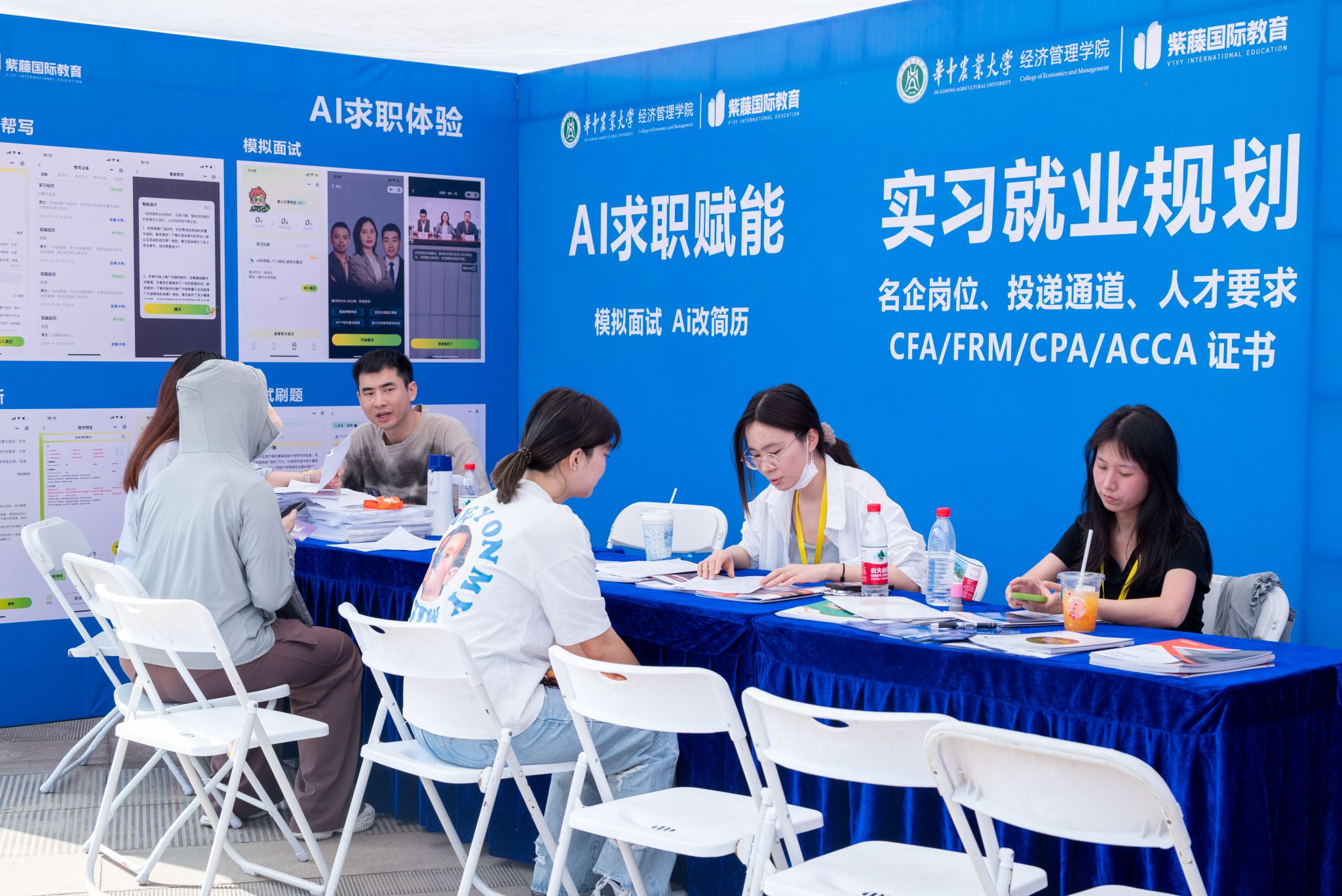 南湖新闻网讯(通讯员 杨梓蔚 韩嘉慧)4月10日下午,beat365官网2025届文管类生涯规划展暨春季双选会在人文社科楼附楼外广场举行。本次活动由beat365正版唯一入口必一牵头,文法学院、外国语学院、公共管理学院共同承办,吸引金融、零售、农牧、教育等领域的30余家企业参会,800余名校内外学生到场参与。