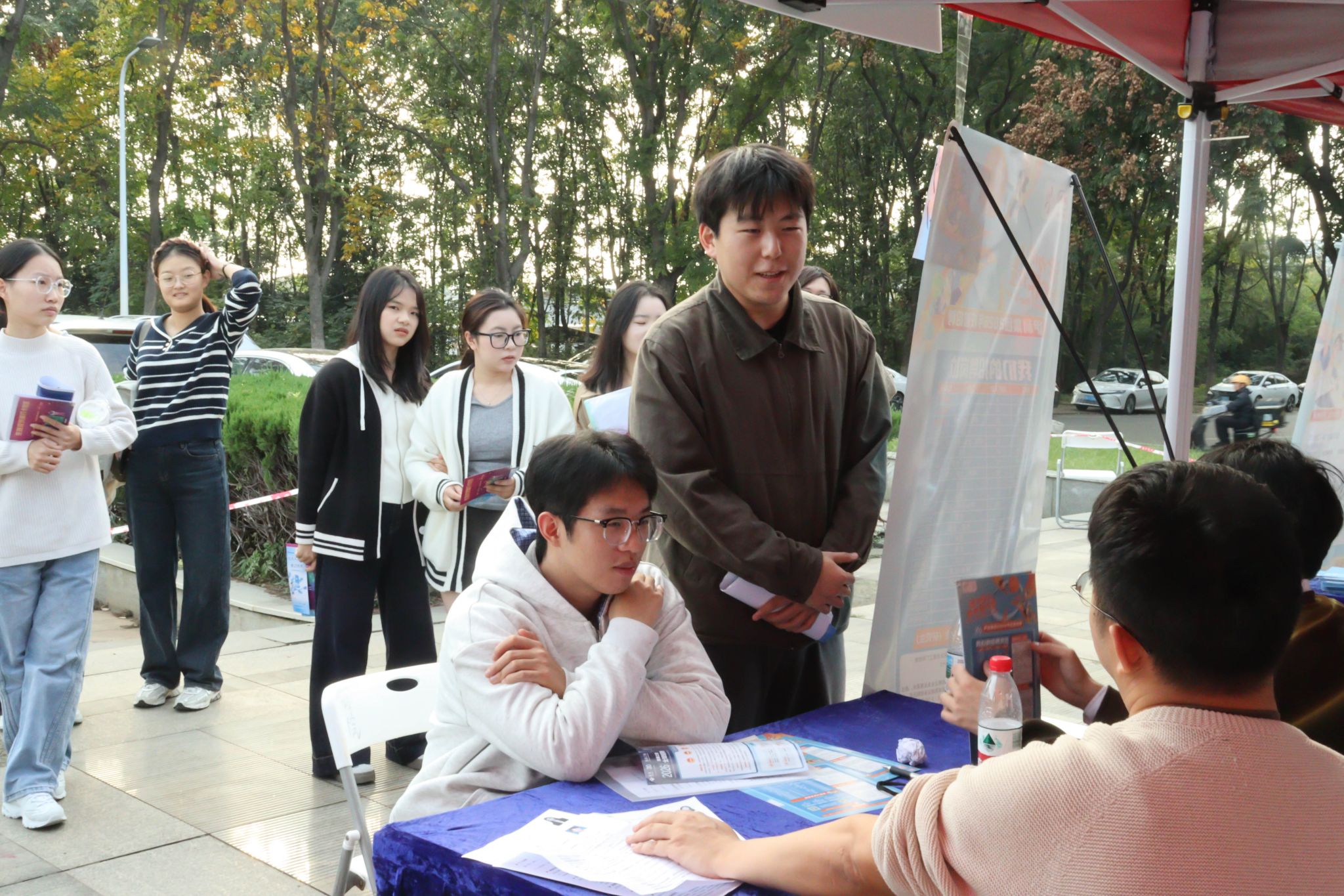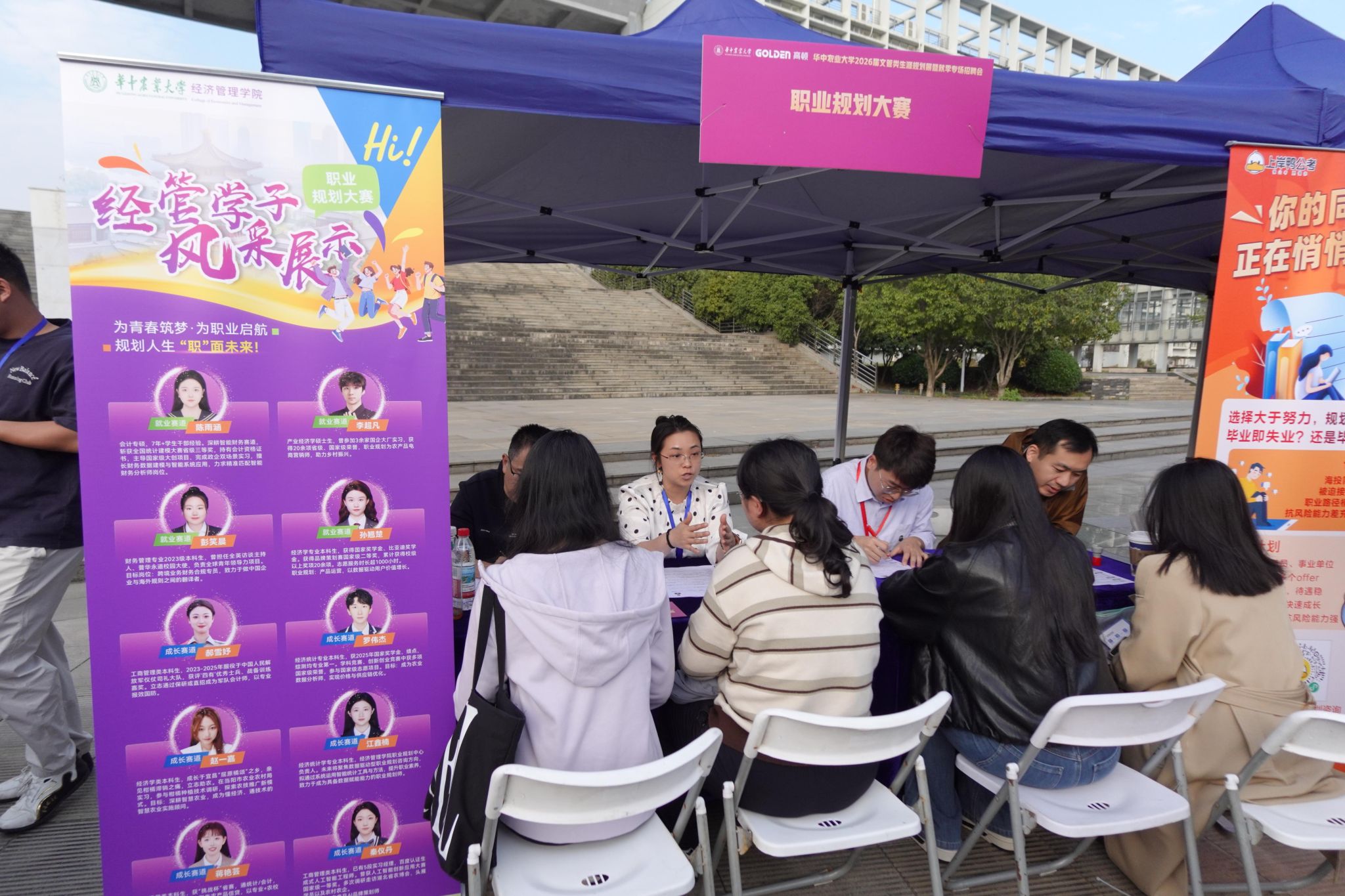 南湖新闻网讯(通讯员 杨梓蔚 吴娇)11月15日下午,beat365正版唯一入口必一2026届文管类生涯规划展暨秋季专场招聘会在人文社科楼附楼外广场举行。活动旨在精准对接文管类学生多元化发展需求,搭建毕业生与用人单位双向选择平台,由本科生院、研究生院、beat365正版唯一入口必一联合主办,文法学院、外国语学院、公共管理学院、华农林肯学院协办,吸引了三十余家企业及近千名学生参与。