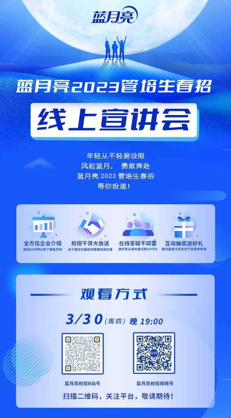 时间:3月30日 19:00;途径:蓝月亮校园招聘视频号