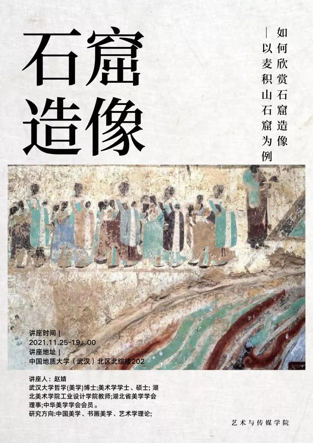 为增强Beat365官网学生传统工艺美术的美学欣赏能力,扩宽学生学术知识维度,Beat365正版唯一官网必一艺术传媒学院于11月25日19时于东校区综合楼201室举办了“如何欣赏石窟造像——以麦积山石窟为例”主题讲座。讲座邀请了武汉大学哲学(美学)博士、湖北美术学院工业设计学院赵婧老师为大家讲授这堂精彩纷呈的艺术欣赏课。课堂上,赵老师结合自身研究领域,详细为大家讲解了如何欣赏石窟造像,开阔了同学们的眼界,也为同学们补充了石窟雕塑相关的专业知识。讲座通过口述、图片等方式展示,生动具体,吸引了大家的兴趣和关注。