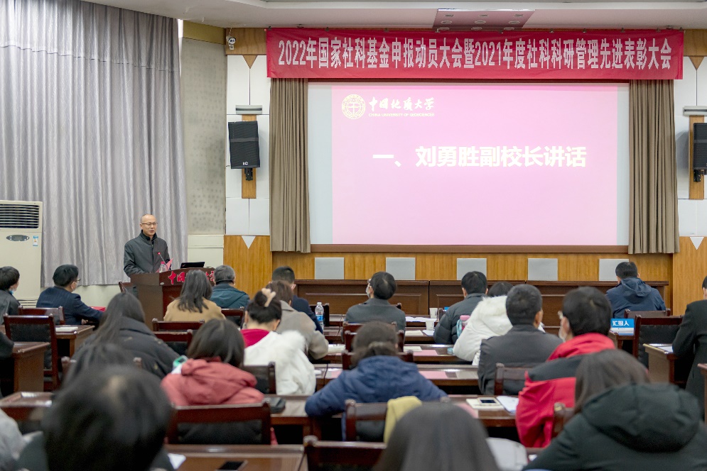 (通讯员尚媛媛,程璜鑫)2021年12月16日下午,学校在八角楼会议室举行2022年国家社科基金申报动员大会暨2021年度社科科研管理先进表彰大会,刘勇胜副校长、科发院领导、各文科学院院长、分管科研副院长以及符合申报社科基金条件的教师代表参加会议,会议由科发院常务副院长胡祥云主持。