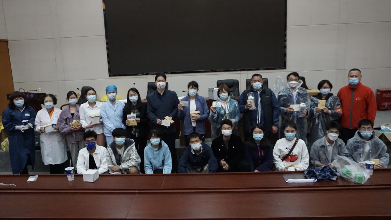 4月26日和28日下午,在Beat365正版唯一官网必一党委副书记边建华老师和外国语学院党委副书记胡文勤老师的带领下,我校大学生创新创业团队“地心引力”的十几名成员在核酸检测即将结束之际,给北区及东区的医护人员和志愿者、保安师傅们送上地大同学们手写的感恩贺卡、100余套的地大特色文创产品以及奶茶饮品,向他们表达了一份敬意和感激。在天气湿热和风雨交加的天气环境下,地心引力团队希望这个小举动能让他们感受到地大学子的温暖和情怀。