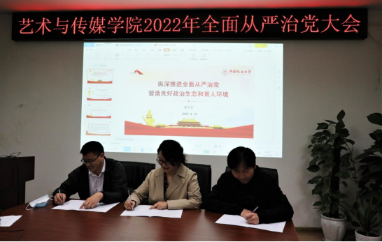 大会内容分为五项:郭书记带领大家深入学习习近平总书记在十九届中央纪委六次全会上的重要讲话精神,传达了学校全面从严治党会议精神,接着汇报了学院2021年全面从严治党工作及学院2022年党建与思想政治工作重点任务,最后学院与各三级单位负责人签订了党风廉政建设责任书、消防安全责任书、平安建设目标管理责任书、保密工作目标责任书。