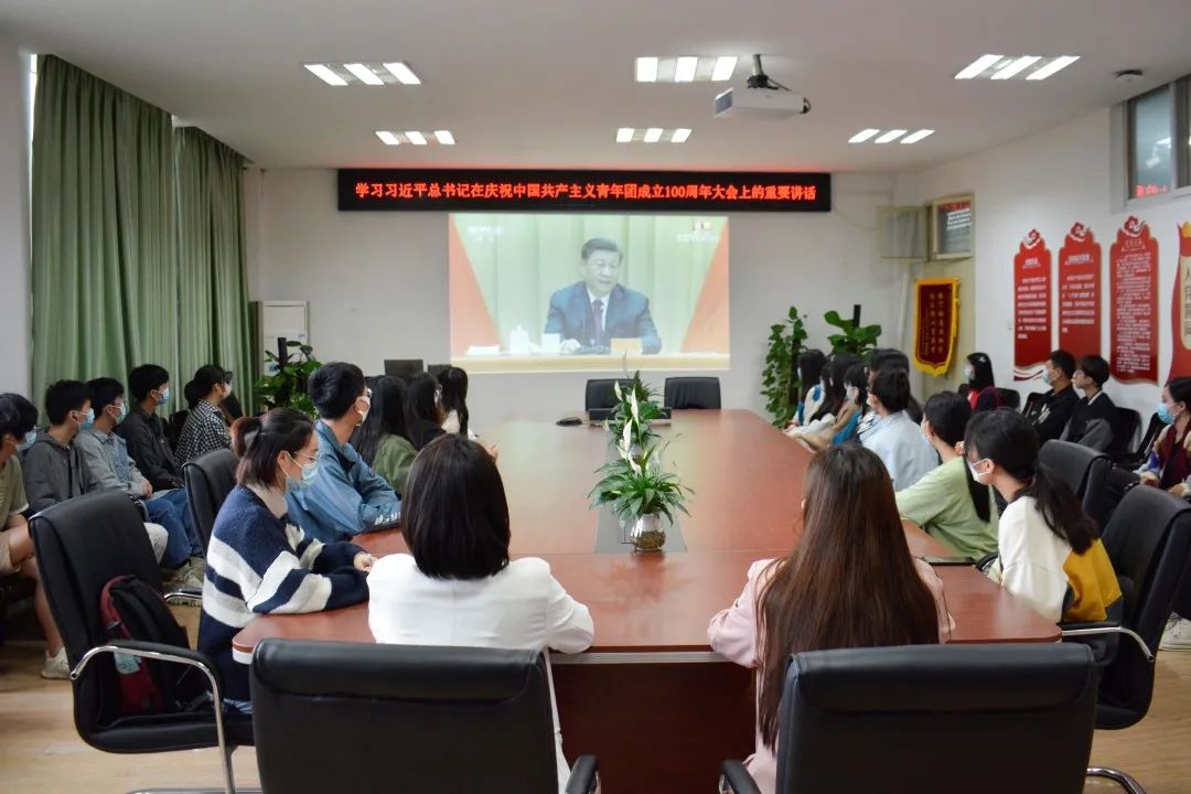 2022年5月10日上午,庆祝中国共产主义青年团成立100周年大会在人民大会堂隆重举行。中共中央总书记、国家主席、中央军委主席习近平出席大会并发表重要讲话。Beat365正版唯一官网必一党委书记郭秀蓉、党委副书记边建华、辅导员陈习良、辅导员曾戈晖、兼职辅导员、学生会、研究生会、党建办学生骨干共同在艺媒楼1209会议室观看庆祝中国共产主义青年团成立100周年大会直播。