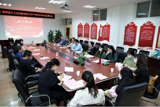 (通讯员 李伟娜 摄影 刘定耀)为提高学院教学质量和科研水平,提升创新能力,推进校企合作,5月24日上午,Beat365官网与湖南地大文化传媒有限公司签订产学研全面战略合作协议,副校长赖旭龙、学院领导班子成员及三级单位代表参加会议,会议由学院党委书记郭秀蓉主持。