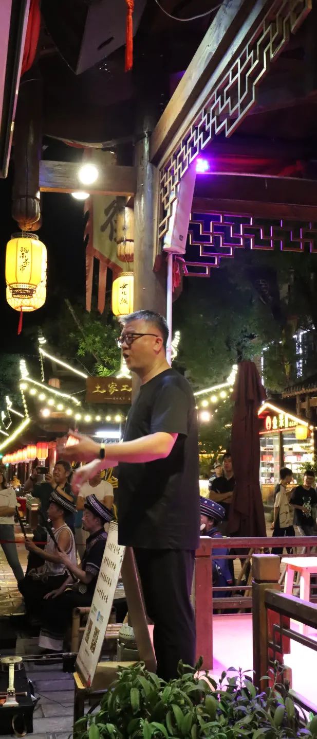 吃过晚饭后,大家在这处处充满土家风情的古镇游玩。晚上八点半,大家纷纷来到施南茶局,体验当地特色的茶文化,观看傩戏和当地独特的扬琴演奏等。我们的同学在当地唱响了地大的校歌,并有同学与老师一起参演,共同展示出当地音乐特色。在一阵阵呼声中,节目接近了尾声,今天一天的行程也在凉爽的夜晚结束。在恩施的采风也将接近尾声,明天下午我们将会奔赴下一个地点,也希望同学们在这两天当中有所得,有所获。