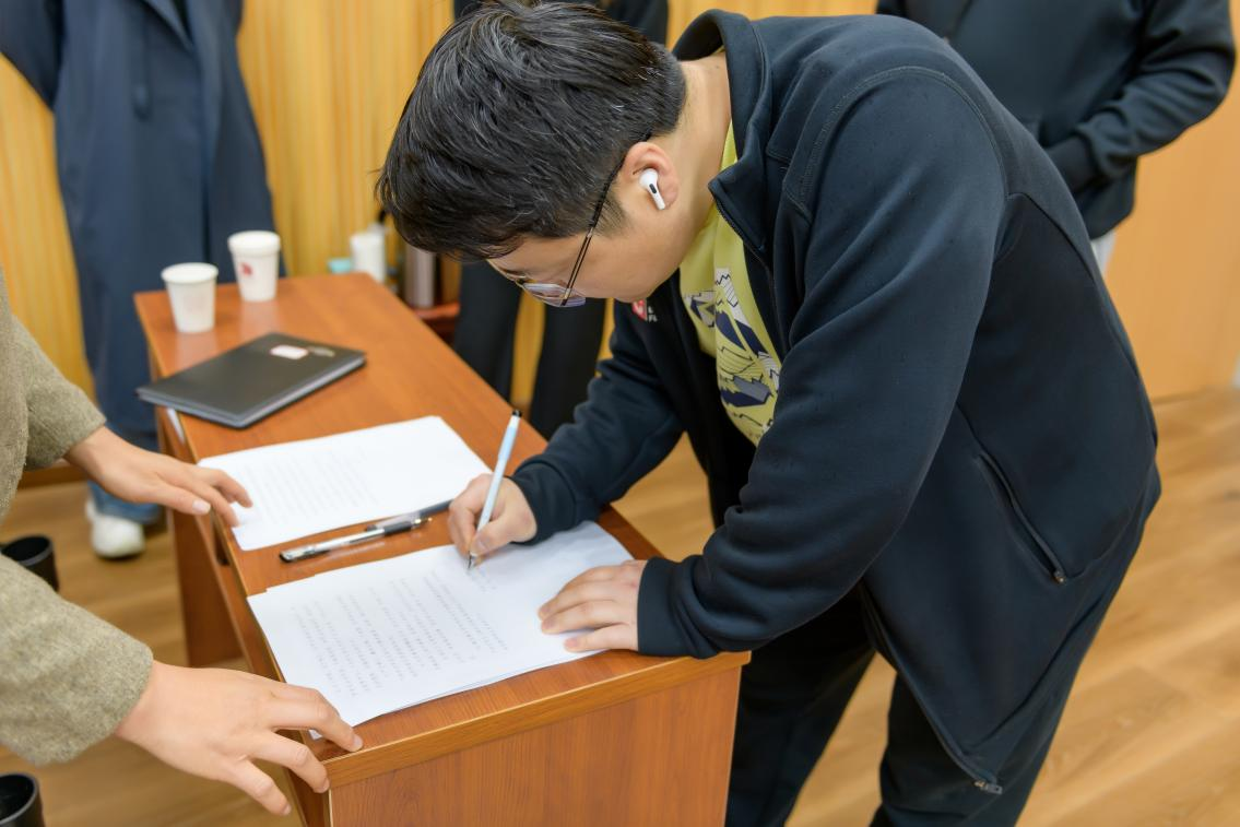 会前全院老师签订了教职工思想政治与师德表现承诺书,一致同意严格遵守新时代高校教师职业行为十项准则,杜绝有损职业声誉的行为,认真落实立德树人根本任务,积极营造风清气正的育人氛围。