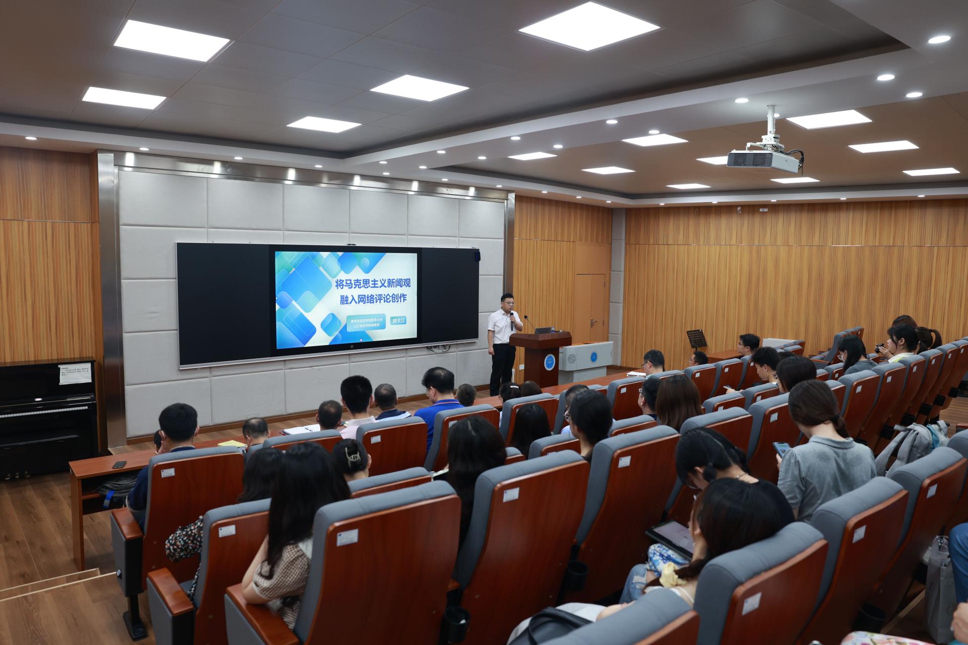 围绕科学认识网络传播规律、提高用网治网水平和理直气壮唱响网上主旋律的学习主题,2023年6月2日,Beat365正版唯一官网必一邀请教育部高校网络名师、汉江师范学院副教授、湖北省重点网评阵地“红笔网”创始人、全国优秀网评员胡文江作专题讲座。作为学习贯彻习近平新时代中国特色社会主义思想主题教育“六组联学”的内容之一,党委组织部、党委统战部、党委宣传部、离退休工作处、工会、图书与档案文博部、外国语学院等单位党委理论学习中心组成员,在艺媒楼1104报告厅与全校网络评论创作爱好者共同聆听了讲座。