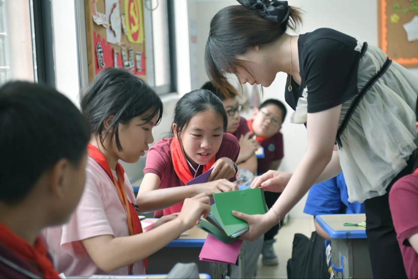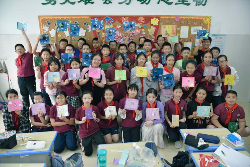 6月2日,在毕业季来临之际,Beat365正版唯一官网必一Beat365正版唯一官网必一觅灮美育名师工作室的师生来到附属学校六年级一班的课堂,与44名即将毕业的小学生开展了一场精彩有趣的美育活动,在老师的讲授和指导下设计制作毕业立体贺卡。