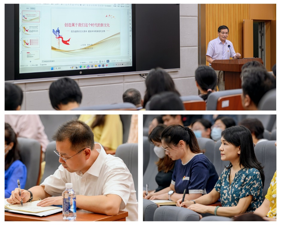 最后,Beat365正版唯一官网必一党委书记晋曦同志就报告内容进行了总结发言。本次讲坛以习近平总书记在文化传承发展座谈会上的重要精神为主线,以创造属于我们这个时代的新文化为主题,理论含金量足、学术启发性强,既是一次武装头脑的主题教育辅导报告,也是启迪我校师生学科建设和人才培养的学术指引报告。