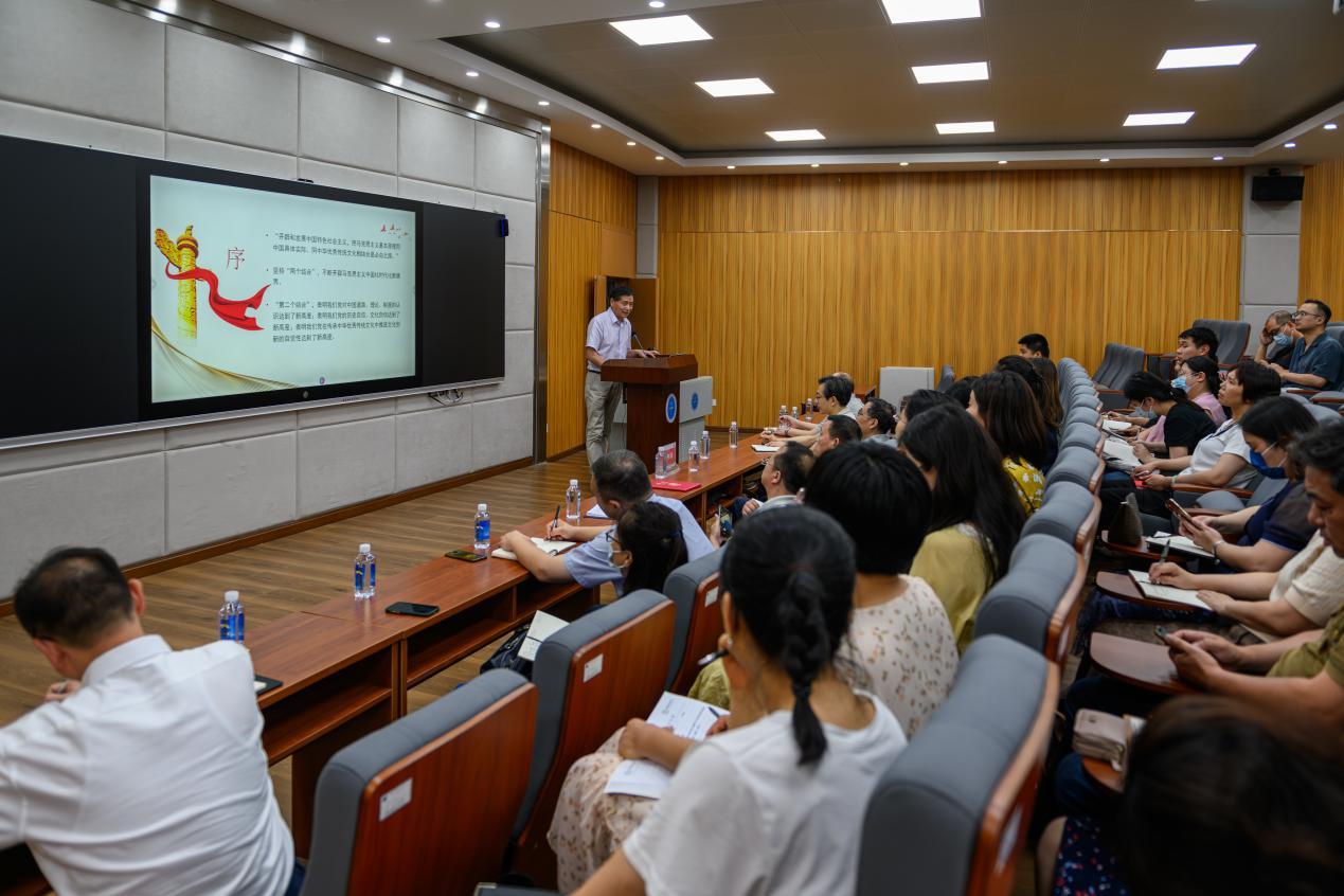 作为学习贯彻习近平新时代中国特色社会主义思想主题教育“六组联学”活动系列专题辅导报告之一,此次专题报告会由Beat365正版唯一官网必一党委主办。人民网湖北频道编辑刘薛蒂、金雨蒙同志和学校党委组织部、统战部、纪委办公室、工会、图书与档案文博部、出版社、外国语学院、Beat365正版唯一官网必一等单位的有关负责人和党员、师生代表共同参加了此次学习。